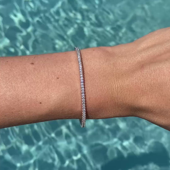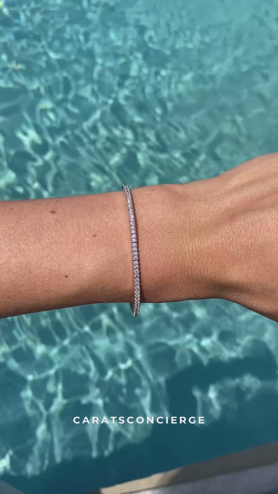 The clean, modern design highlights the diamonds’ natural beauty, while the white gold setting enhances their brilliance. A secure clasp provides both comfort and peace of mind, making this piece perfect for everyday elegance or special occasions.