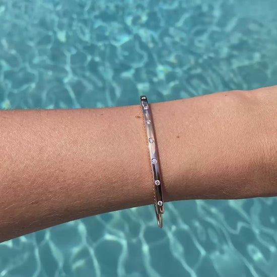 The slim and lightweight style makes it perfect for everyday wear, while its refined elegance ensures it transitions seamlessly to evening occasions. Crafted with a secure clasp, this bracelet offers both sophistication and practicality.
