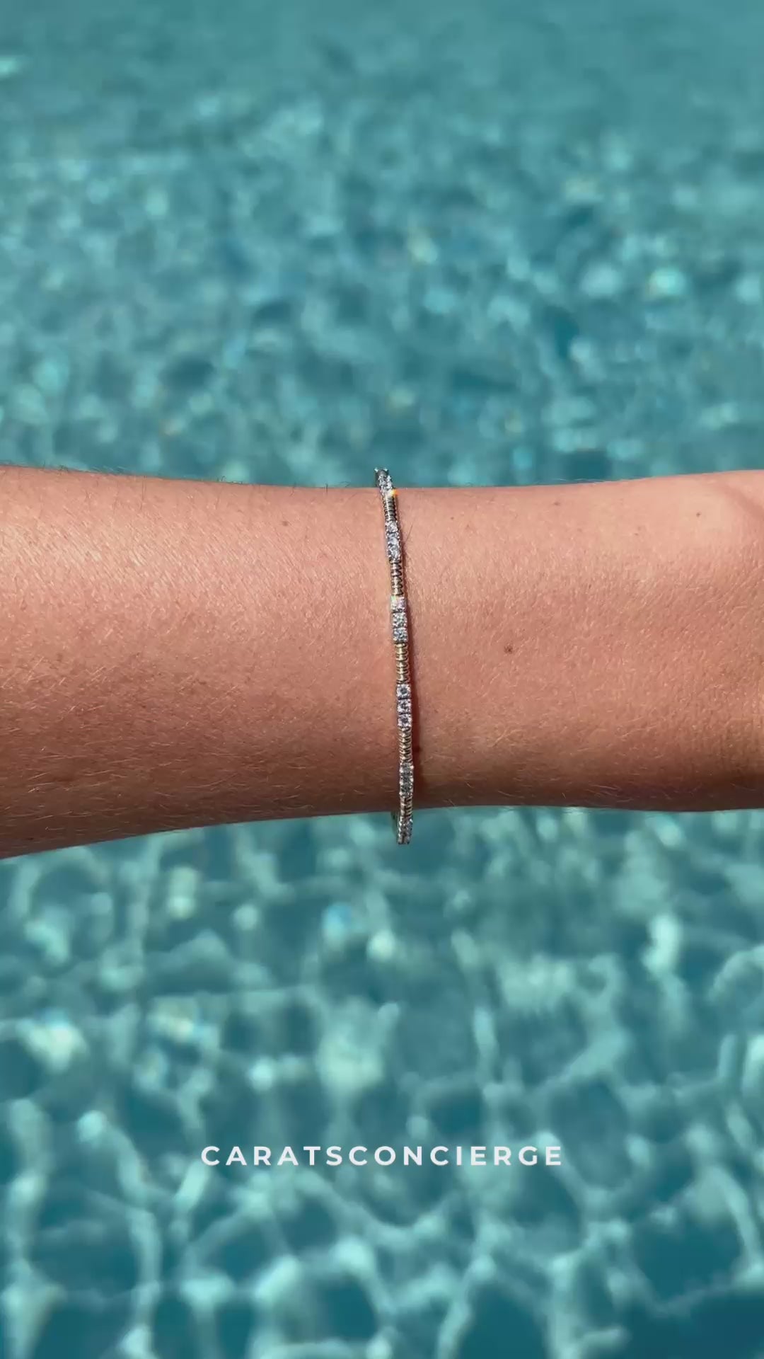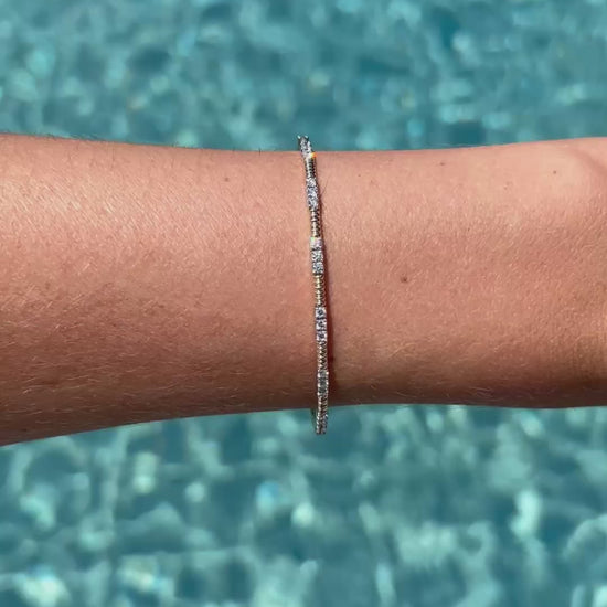 Its slim, elegant silhouette makes it versatile for both everyday wear and special occasions, while the continuous sparkle ensures it stands out on the wrist. Designed with a secure clasp, this piece blends sophistication with comfort, making it a refined addition to any jewelry collection.