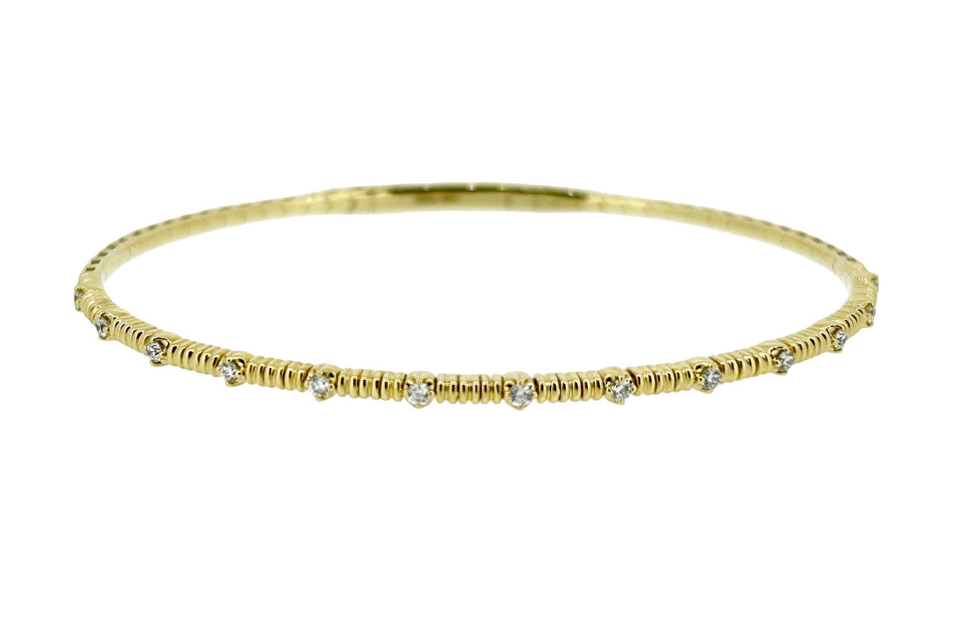 Diamond Yellow Gold Ribbed Bangle - 0.20 Ct. Tw.