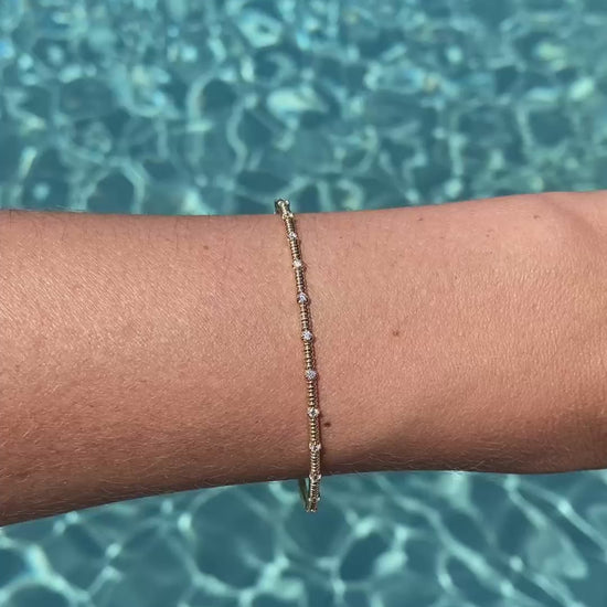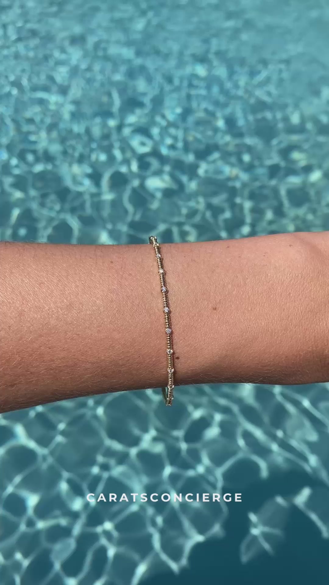 Its slim, lightweight design makes it perfect for everyday wear, while the diamonds provide a touch of luxury for special occasions. The bracelet features a secure clasp for comfort and peace of mind, making it both stylish and practical.