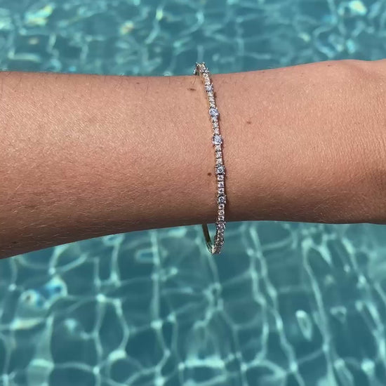 The slim, elegant profile makes it versatile enough for daily wear while still offering the refined sparkle of a fine diamond peice. A secure clasp ensures comfort and confidence, making this bracelet both luxurious and practical.